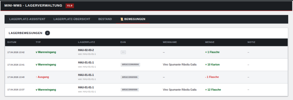 Die intuitive Navigation ermöglicht einen nahtlosen Wechsel zwischen Platz-Assistent, Bestand und Warenbewegungen.